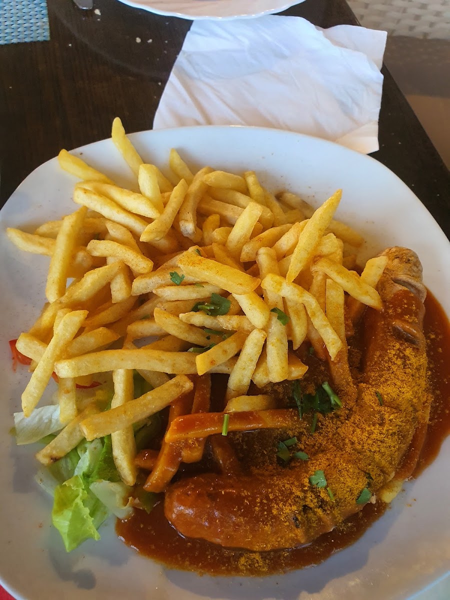 An unmistakably German pub dining experience with great value-for-money menu options. We felt the warm reception from the moment we walked in: there was a German football match playing on the big screen in the back; plenty of other German speaking diners hanging out; and the staff serving helped us feel right at home with menu item suggestions (especially given it is all written in German). My wife and I arrived for a quick meal before boarding our flight at the airport nearby. We felt at ease with the relaxed vibe, and enjoyed our meals. The Currywurst with Frites was the stand out while the Grilled Chicken held its own. We were delighted to be served two complimentary shot glasses of Tunel De Mallorca when we asked for the bill. What an excellent way to finish things off.